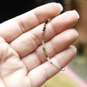Materiały: kompozyt złota 585, szara nylonowa nitka, kryształ górski, hematyt i onyks. Długość: uniwersalna, możliwość regulacji.