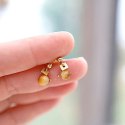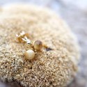 Drobne kolczyki z kocim okiem. Wykonane na srebrem złoconym sztyfcie z dodatkiem złotych dodatków.