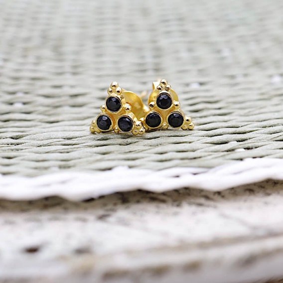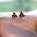 Drobne kolczyki sztyfty z kamieniami. Te delikatne kolczyki sztyfty zostały wykonane ze srebra złoconego i naturalnych minerałów. W tej parze prezentuje się spinel czarny.