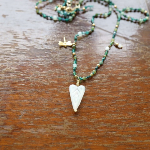 💚 Naszyjnik z ważką i sercem ze szkła czeskiego 💫