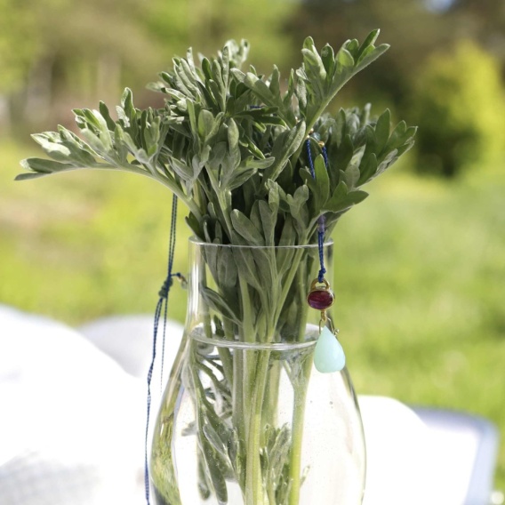 Całość dopełniają subtelne kamienie w odcieniach różu, zieleni i fioletu, a także zakuty w srebrną złocona oprawę turmalin, który dodaje elegancji i szykownego charakteru. Naszyjnik ma wyjątkowo szeroki zakres regulacji, jego długość można dostosować od 38 cm aż do 48 cm. Idealnie dopasuje się do różnych stylizacji, zarówno blisko szyi, jak i niżej, nad dekoltem.